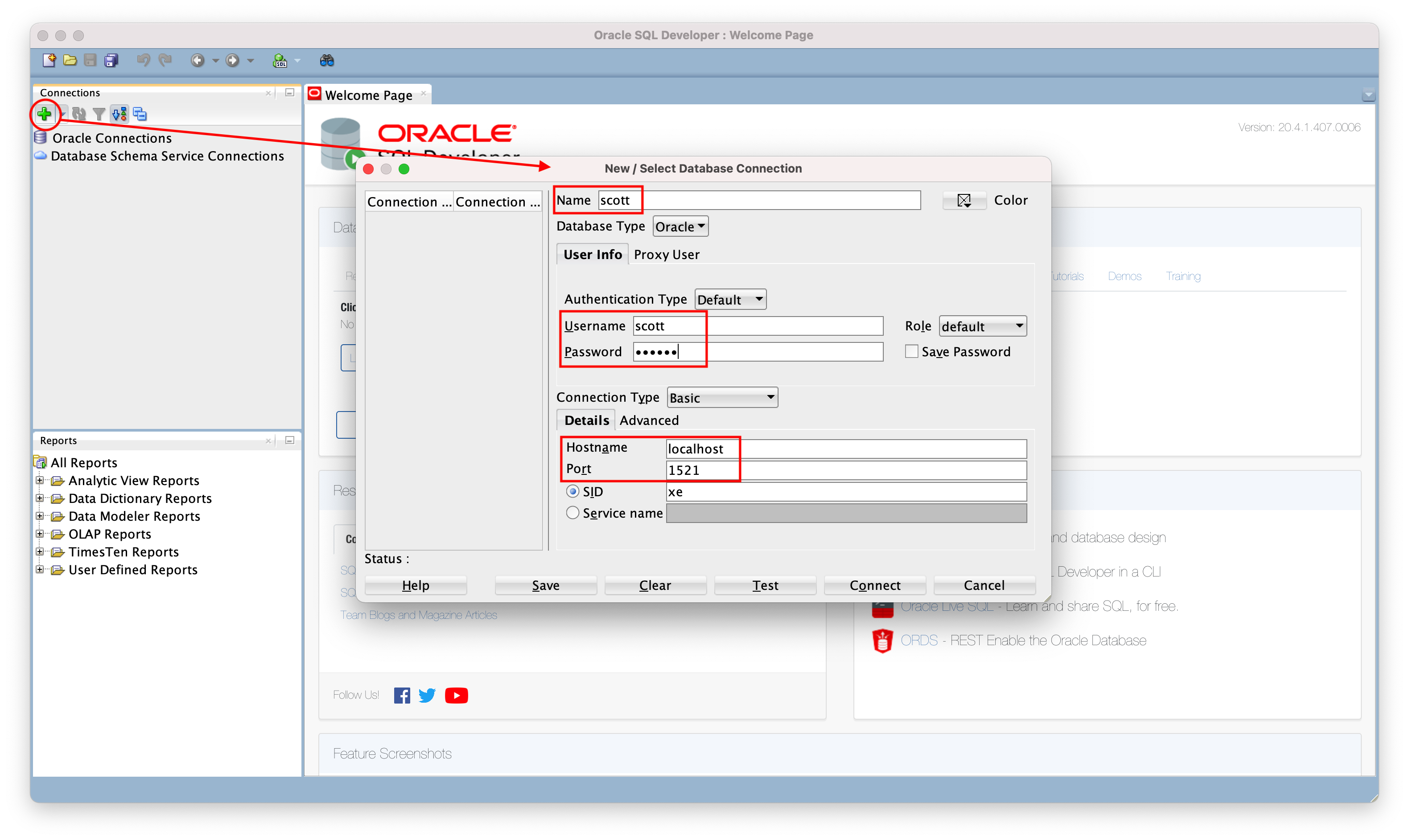 ๋ฌธ์ ๊ฐ ์๋ค๋ฉด sqldeveloper ์ข์ธก ๋ฉ๋ด์ ์ด๋ก์ โ๋ฒํผ์ ํด๋ฆญํ์ฌ connection ์ฐฝ์ ์ด์ด์ ์ฐ๊ฒฐ์ ํด๋ณด์.