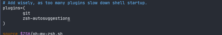git clone https://github.com/zsh-users/zsh-autosuggestions ${ZSH_CUSTOM:-~/.oh-my-zsh/custom}/plugins/zsh-autosuggestions