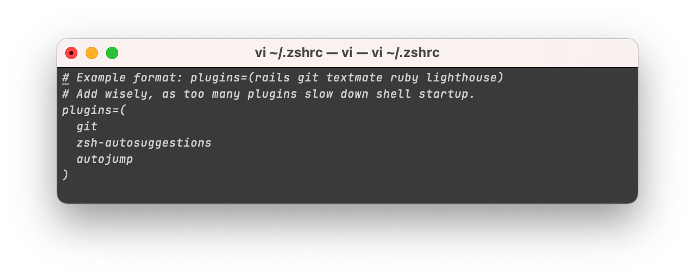 vi ~/.zshrc