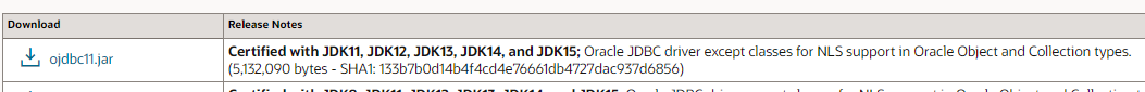 ๊ฐ ๋ฒ์ ์ ํด๋ฆญํด ๋ณด๋ฉด ์ง์ํ๋ oracle, JDK ์ข ๋ฅ๊ฐ ๋จ๋ ํ์ธํ๊ณ ์ค์นํ์.