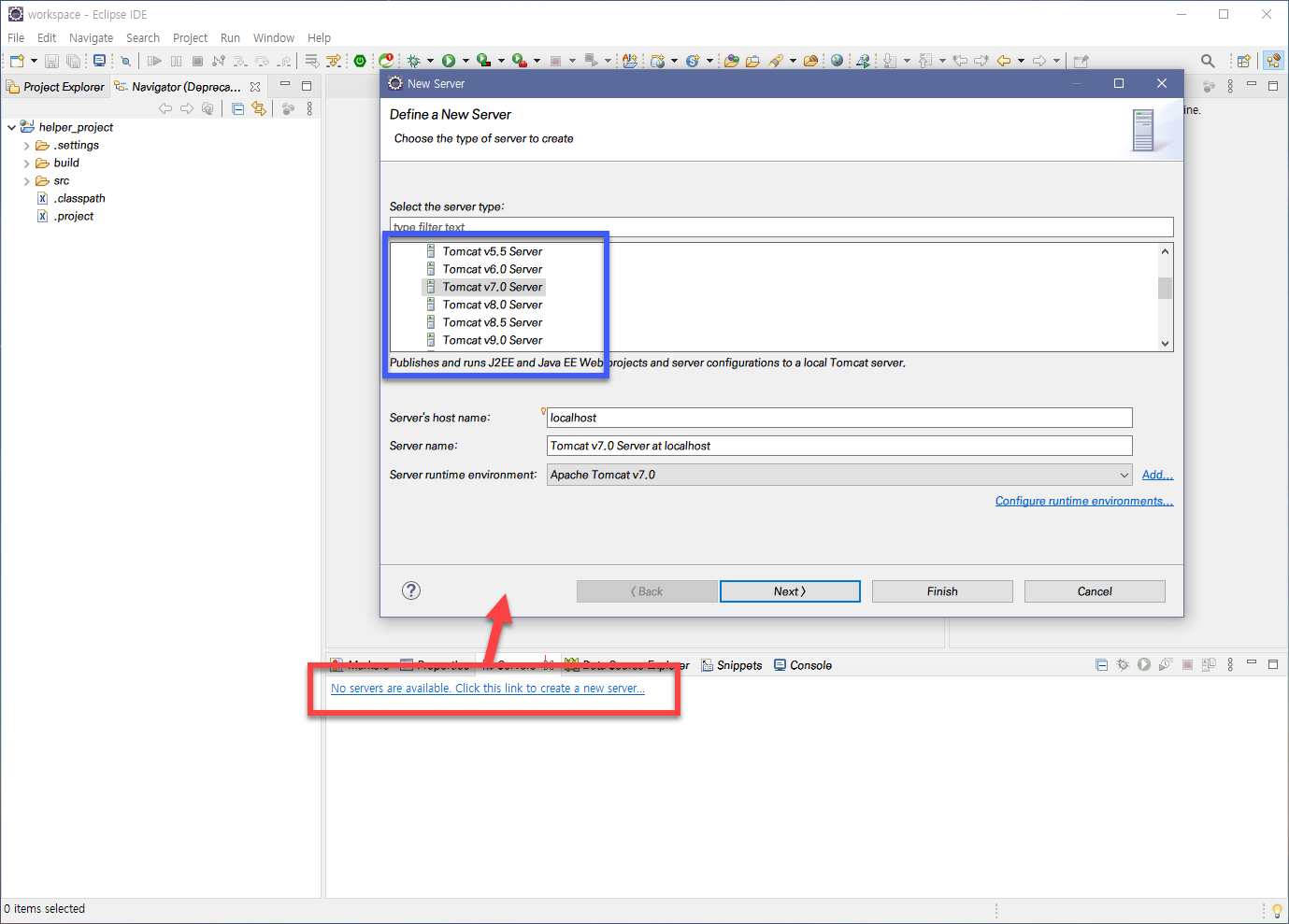 νλ¨μ Server νμ λλ₯΄λ©΄ no servers are availa... κ° λ³΄μ΄λ©°, μ€λͺ λλ‘ λλ₯΄λ©΄ μλ‘μ΄ μλ²λ₯Ό μμ±ν μ μλ€.