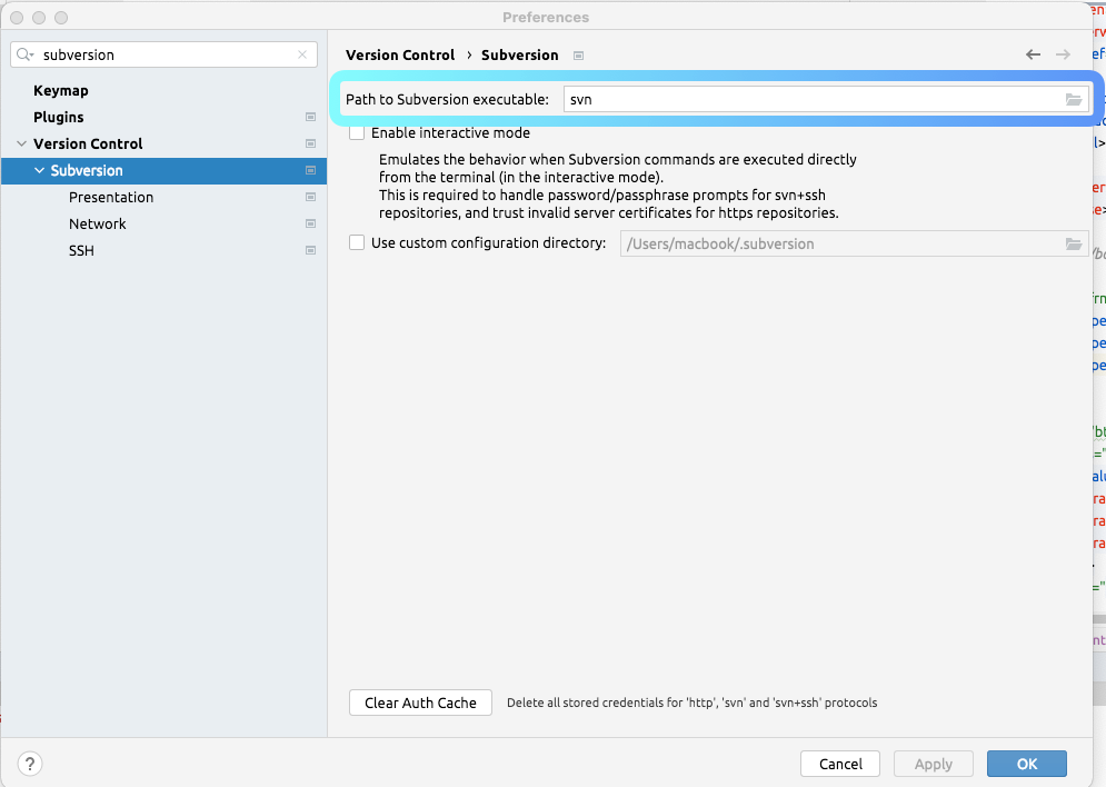 ๐ mac์ ๊ฒฝ์ฐ homebrew๋ก ์ค์น์ /usr/local/opt/subversion ๊ฒฝ๋ก์ svn์ด ์ค์น๋๋๋ฐ,