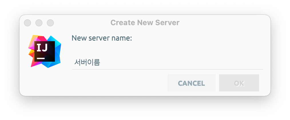 - ์ ํ์ ํ๊ณ ๋๋ฉด Create New Server๋ผ๋ ์ฐฝ์ด ๋จ๊ณ ์๋ฒ์ ์ด๋ฆ์ ๋ฑ๋กํ๋ผ๋ ์ฐฝ์ด ๋จ๋๋ฐ,