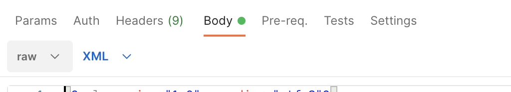 Body ์ raw ๋ฐ์ดํฐ์ xml ์ ์ค์ ํ๊ณ ๊ฐ์ ์ ์ด์ฃผ๋ฉด ๋๋ค.