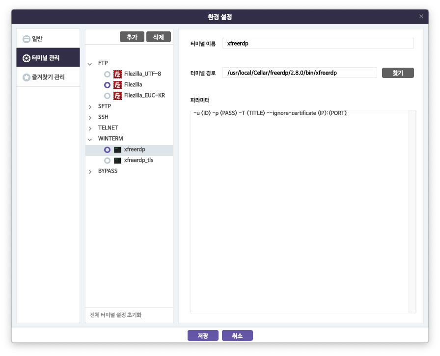 μκΉ μ΄μλ ( μ μ΄λ―Έμ§) μ€μ μ°½μμ ν°λ―Έλ κ²½λ‘ μ μ°ΎκΈ° λ²νΌμ λλ₯΄λ©΄ λ€μκ³Ό κ°μ΄ ν΄λΉ νμΌμ΄ μ°κ²°λμ΄(?) μλ κ²μ νμΈ ν μ μλ€.