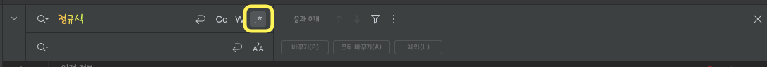 ์ฐพ์ ๋ฐ๊พธ๊ธฐ ( command + R ) ์์ .* ๋ฅผ ๋๋ฌ ์ ๊ท์ ์ ๋ ฅ์ด๋ผ๋ ๊ฒ์ ์๋ ค์ฃผ๊ธฐ๋ง ํ๋ฉด๋๋ค.