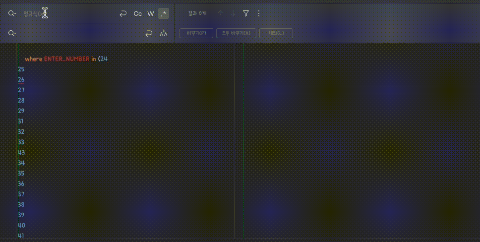 ์ ๊ท์์ผ๋ก ๋ด์ฉ์ ์ฐพ๋ ๊ธฐ๋ฅ์ธ๋ฐ ๋ฌผ๋ก replace ๊ธฐ๋ฅ๋ ํด๋น ๊ธฐ๋ฅ์ ์ฌ์ฉํด์ ํ ์ ์๋ค.
