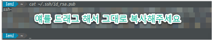 ssh public key ๊ฐ์ $ cat ~/.ssh/id_rsa.pub ํด์ ํฐ๋ฏธ๋ ์ฐฝ์ ๋์ค๋ ๊ฐ์ ๊ทธ๋๋ก ๋ฃ์ด์ฃผ๋ฉด ๋๋ค.