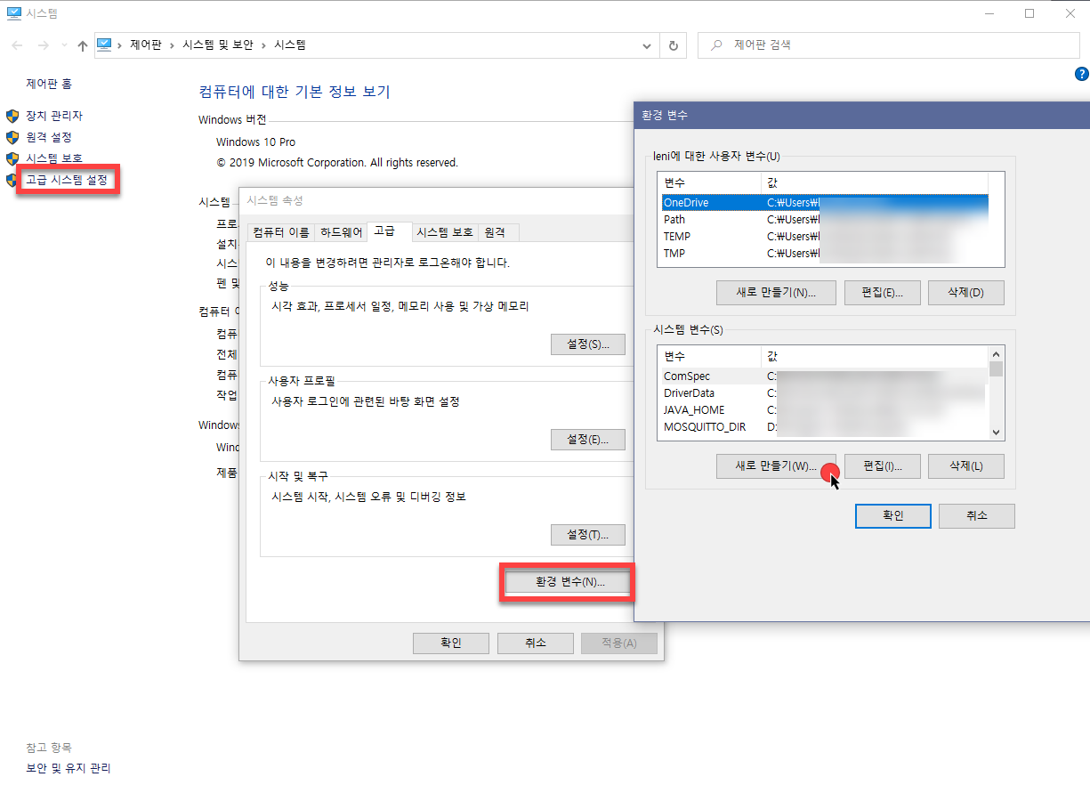 4. ์์คํ ์์ฑ ์ฐฝ์ด ๋จ๋ฉด ์๋ ์ธก์ ํ๊ฒฝ ๋ณ์ ํด๋ฆญ