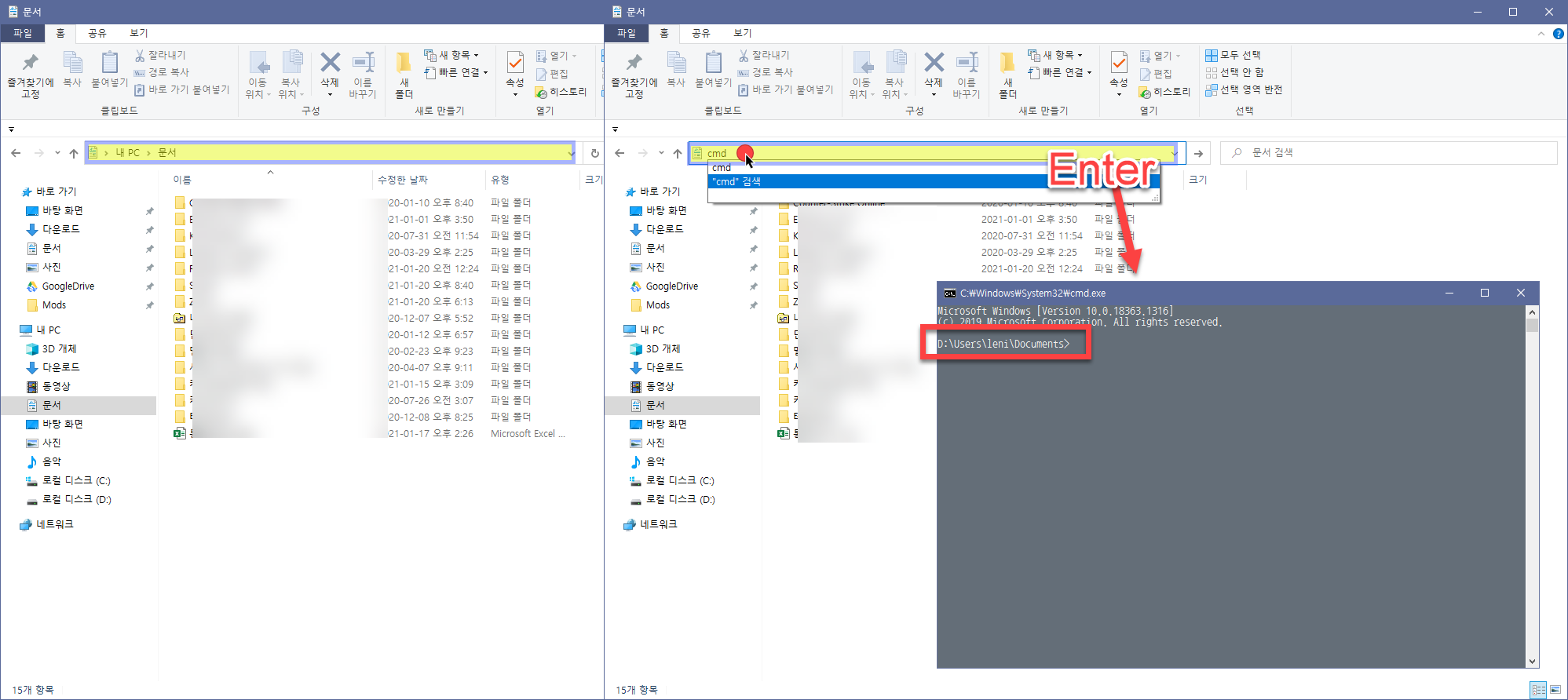 ๋. cmd ์ ๋ ฅ ํ ์ํฐ