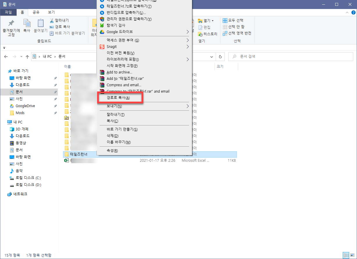 ๋. ๋ณต์ฌํ๊ณ ์ ํ๋ ๊ฒฝ๋ก์ ํด๋นํ๋ ๊ฒ์ ์ ํ ํ Shift + ์ฐํด๋ฆญ!