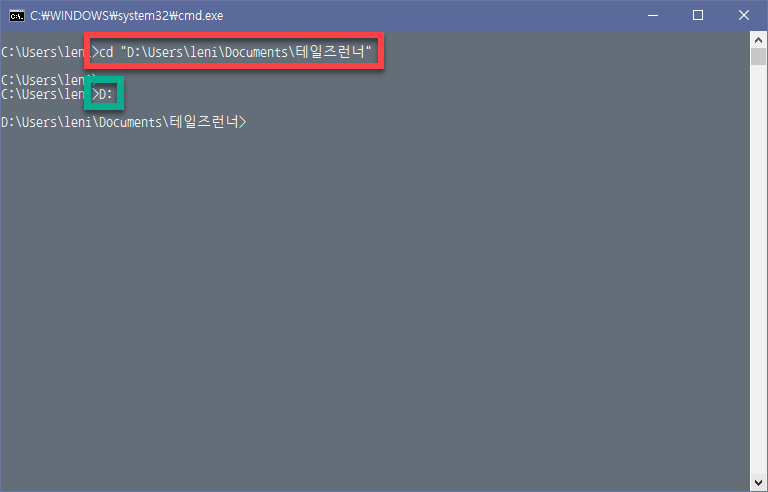 ๋ผ. cmd ์์ cd ๊ฒฝ๋ก๋ถ์ฌ๋ฃ๊ธฐ ํ ์ํฐ!