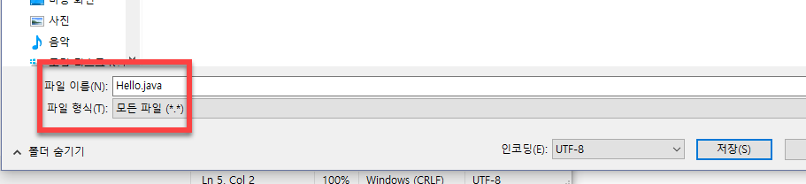 ๋ฐ๊พธ์ง ์์๋ ๋ณดํต .java๋ก ํ์ฅ์๋ฅผ ์ง์ ํด์ ์ ์ฅํ๋ฉด java ํ์ผ๋ก ์ ์ฅ์ด๋๋๋ฐ, ๊ฐํน .java.txt ์ฒ๋ผ text ํ์ผ๋ก ์ ์ฅ๋๋ ๊ฒฝ์ฐ๊ฐ ์์ผ๋ ๊ทธ๋ฅ ๋ง ํธํ๊ฒ ๋ฐ๊ฟ์ ์ ์ฅํด์ฃผ์!