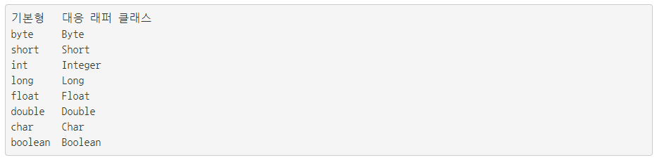 - κΈ°λ³Ένμ λΉκ°μ²΄ ννλΌ nullμ μ¬μ©ν μ μμ§λ§ λνΌ ν΄λμ€λ κΈ°λ³Ένμ classλ‘ κ°μΌ ννμ΄κΈ°μ κ°μ²΄ ννλ‘μ¨ nullμ μ¬μ©ν μ μκ² λλ€.